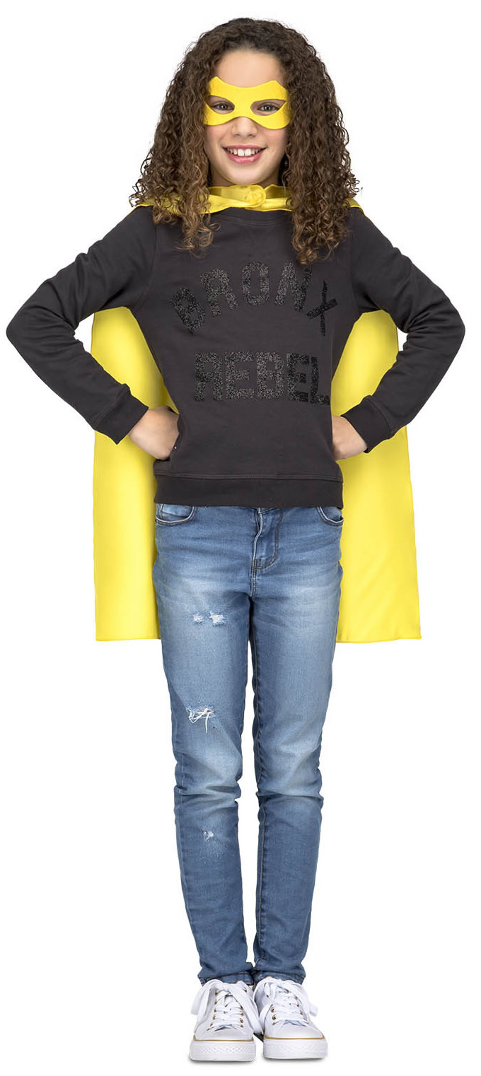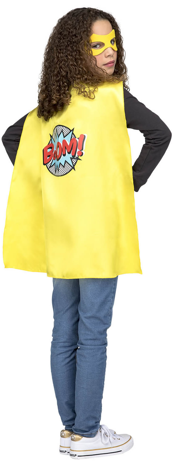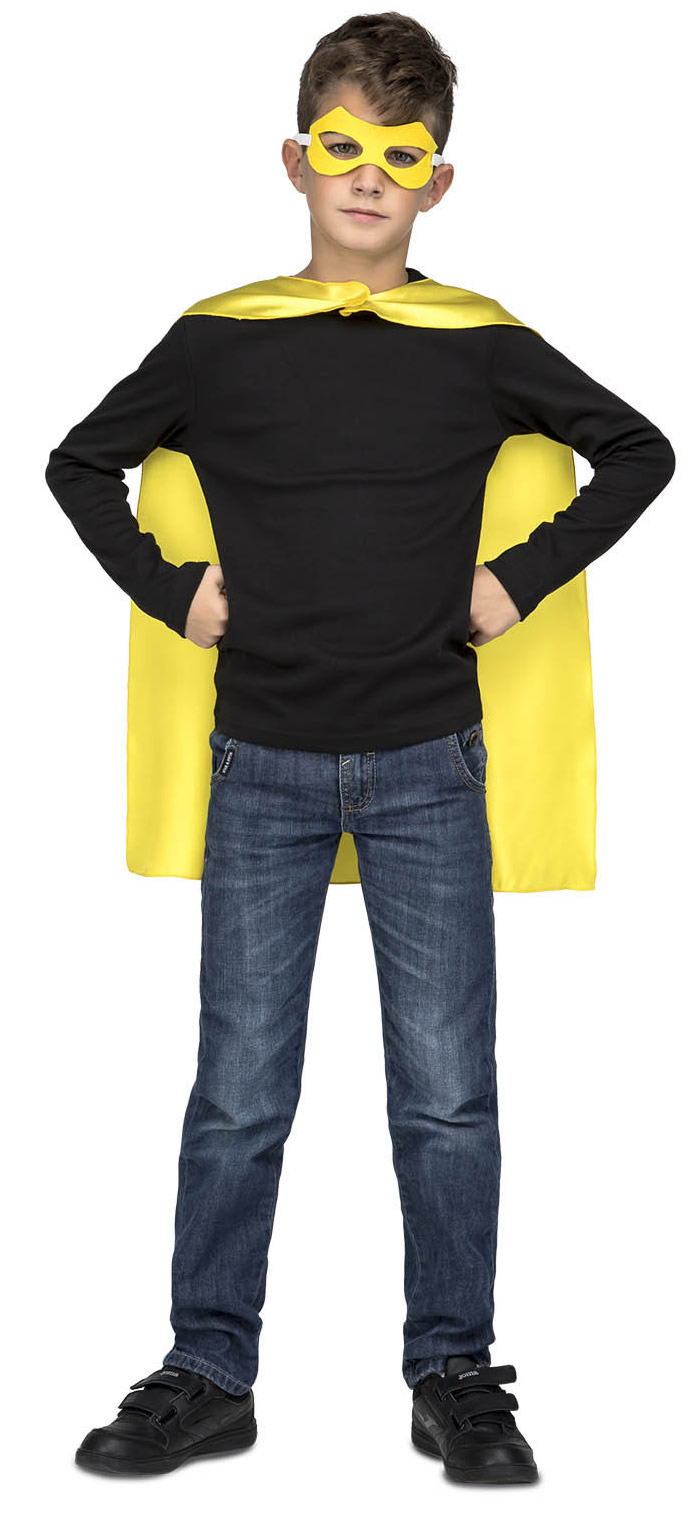 capa o disfraz de superheroe amarilla infantil.Comprar vuestras capas baratas para grupos, este complemento es ideal para tus fiestas de temáticas con amigos para disfraces de superheroe niños y niñas
