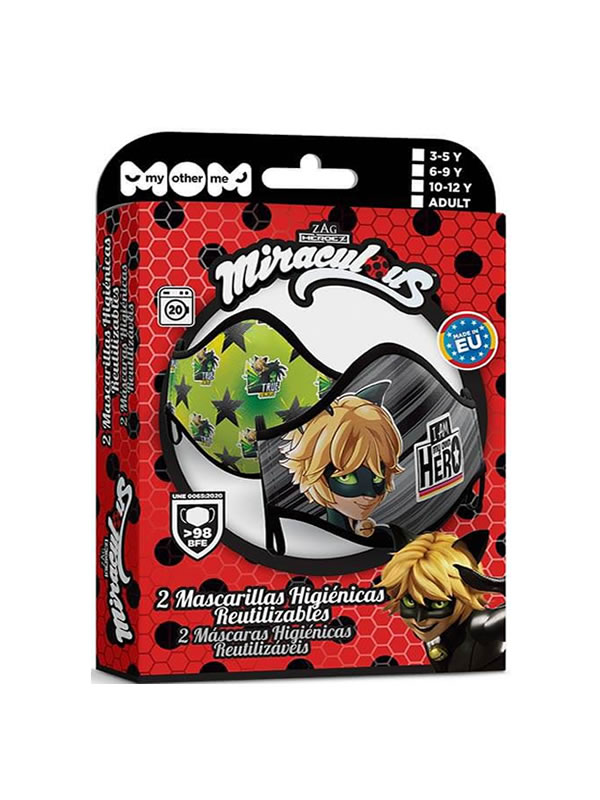 mascarilla cat noir pack de 2 higienica. Estas mascarillas higiénicas reutilizables están hechas en la UE y con una eficacia de filtración bacteriana 98% (BFE). Fabricadas según la especificación UNE 0065:2020. La mascarilla higiénica protectora aguanta hasta 20 lavados. Elige entre las tallas de adulto y infantil sal a la calle protegido con lo mejores diseños para hombre, mujer y niño, niña.